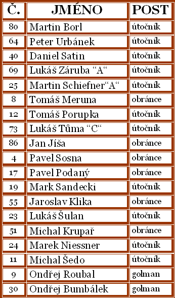 Soupiska týmu HC DOMYNOS PRAHA pro sezonu 2011/2012